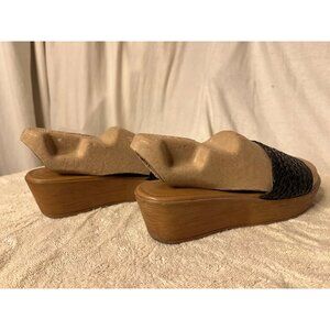 BASS Women's Willow SlideWoven Leather Platform Sandals Size 7 1/2M Black & Brown