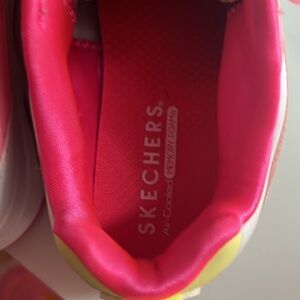 Sketchers memory foam girls sneakers size 1. Barely worn. White/pinks/yellow