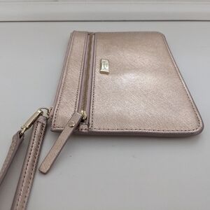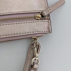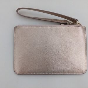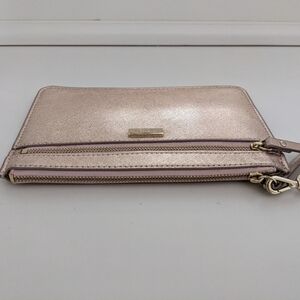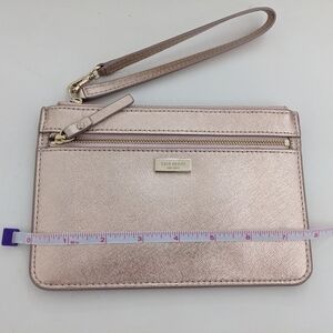 Possibly New? EXCELLENT Condition!! Kate Spade New York Tinie Laurel Way Rose Gold Wristlet. Beautiful! This wristlet is a great piece to have when you are on the go and don't have to carry a lot. The interior has space for your cards and money and a smaller phone. There is a attached wristlet strap. Measurements are shown in the photos. It comes from a smoke and pet free home. No defects found upon final inspection. Message me if you have any questions. Enjoy!