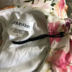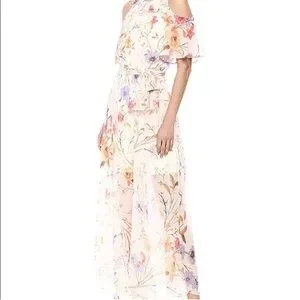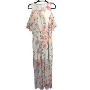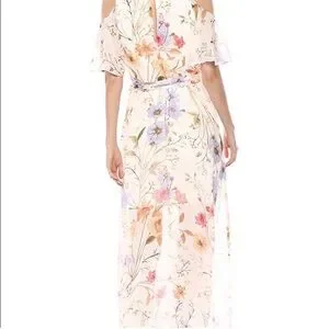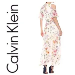 NEW Calvin Klein Cold Shoulder floral chiffon Maxi Dress with Self-sash Waist