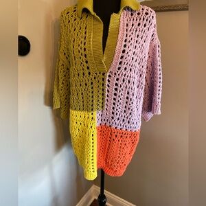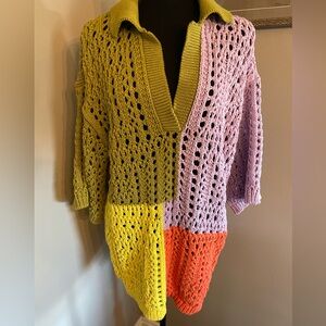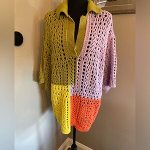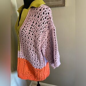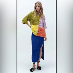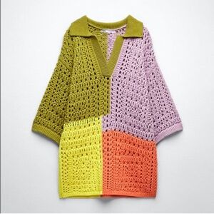 ZARA oversized knit polo sweater shirt color block crotchet rare sold out