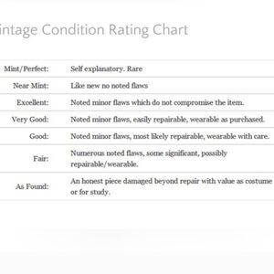 Due to growing buyer fraud, all items are photographed with date stamps prior to shipping. Buyer agrees these pre-shipping photos will be used exclusively to settle any dispute about item condition. No returns will be allowed if pre-shipping photos contradict buyers' claims. No returns will be allowed due to minor flaws as this piece is pre-owned, and any flaws I missed will not change the excellent vintage condition categorization. No returns will be allowed unless the item has been grossly misrepresented.