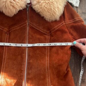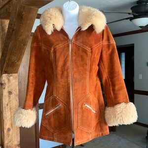 Vintage 1970s Brown Suede Leather Fur Lined Penny Lane Jacket XS