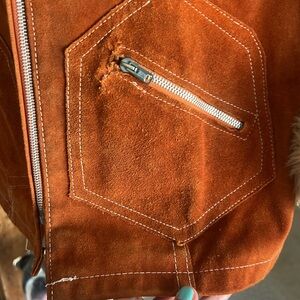 Orange | Rust | Brown | Vintage | Leather | suede| Fur | XS | Small | Extra Small