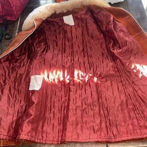 Vintage 70s penny lane jacket. Real leather and sheep skin. It’s in awesome condition. Only two tiny wear flaws on pockets (shown in pic… but the jacket is 45-50 years old) Pretty warm! No tags at all but fits like a X-Small - Small. She is gorgeous and ready for another decade of wear!