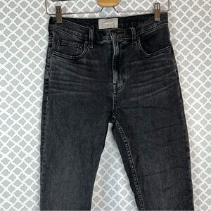 EUC Everlane Black Wash High Rise Skinny Ankle Jeans- black Wash with Fading and whiskering, zipper fly with button closure, 5 pocket styling, excellent preowned condition,smoke and pet free home.