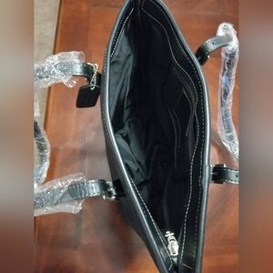 New Black Leather Coach bag with white stitching