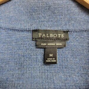 Talbots Womens Blue Pure Merino Wool Knit Blazer Sz M Two Button Pockets Career