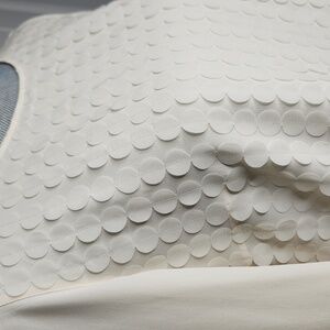 symmetrical circles of silk sewn on entire front of blouse