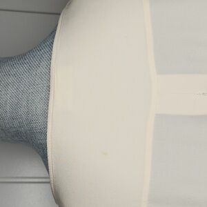 few minor marks on upper back and left sleeve by button. I have not tried to get them out.