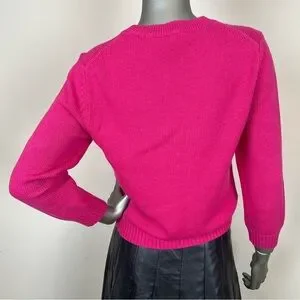 Theory S Cashmere Cotton Crew Neck Pink Cable Knit Sweater Preppy Casual Worn 1x
