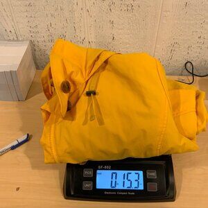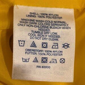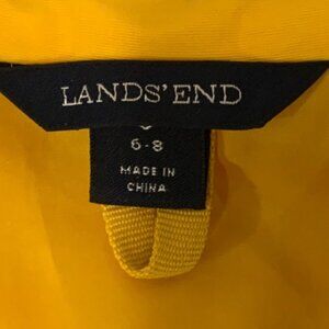 Compact and stylish, this Lands End women's small yellow hooded rain coat doubles as a storm jacket. It features a front zipper and buttons, made of durable nylon.