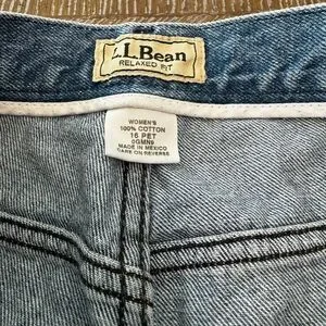 LL Bean Sz 16 Petite Relaxed Fit Blue Denim Pants waist 34” Inseam 26” Cotton