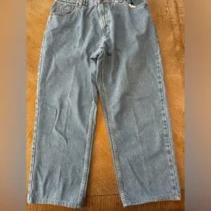 LL Bean Sz 16 Petite Relaxed Fit Blue Denim Pants waist 34” Inseam 26” 100% Cotton - 2740