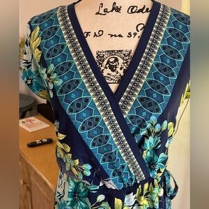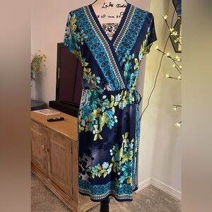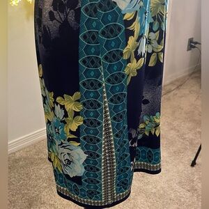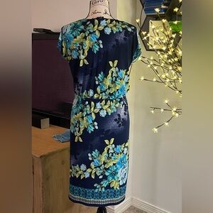 See photos for description. Perfect work dress easy care and does not wrinkle comfortable and stylish!