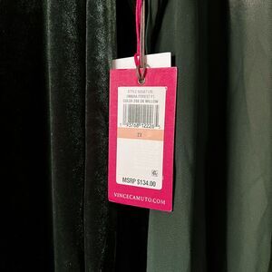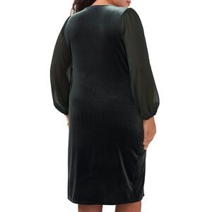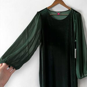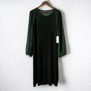 New Vince Camuto Velvet Emerald Green Sheer Balloon Long Sleeve Dress Size 2X