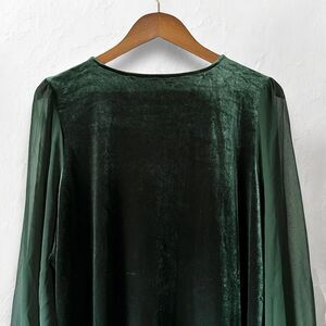 Vince Camuto Velvet Emerald Green Sheer Chiffon Balloon Long Sleeve Dress