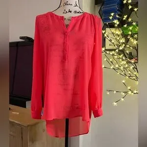 Candies- Sweet oversized blouse in a beautiful bright coral color, Size Large