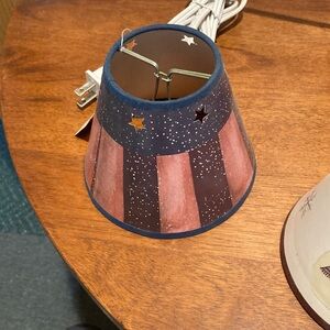 Beehive spool lamp with punched tin shade plus 4 seasonal shades. lamp is 15" high with a 6" base