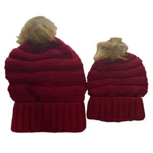 NWT Parent & child matching Warm Winter faux Fur Pom Pom Ball Knit Beanie Hats