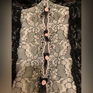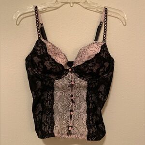 -- PINK & BLACK LACE BRA LINGERIE CORSET, CLOSES WITH HOOK & EYE IN THE BACK, UNDERWIRE AND BONING PRESENT