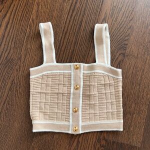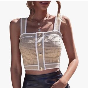 • Button front, wide straps, sleeveless, ribbed knit, cropped length, slim fit, elegant tops