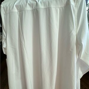 NWT Athleta white collared button down long sleeve. The perfect shirt, easy wash/dry. Longer length, loose, comfortable fit. See it. In stores/ online!! Also available in my closet in black.