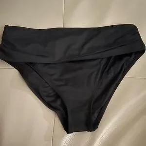 La Blanca black swimsuit hipster bikini bottom with launched banding. It’s a very versatile piece that can be paired with a patterned top or a solid in black. new without tags, size 12. Hygienic strip in place.