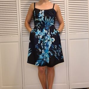 Beautiful White House Black Market floral dress with pockets and adjustable beaded straps. Like new. No flaws.