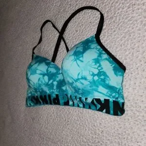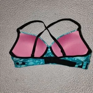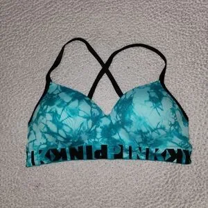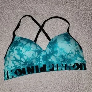Victoria Secret Pink Gorgeous Cool Ocean Water Blue Tye Dye Size Large . Strappy Slightly Padded Sports Bra , Or Bralette . Excellent Condition !