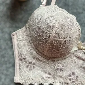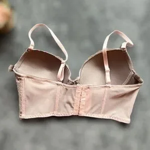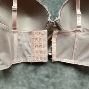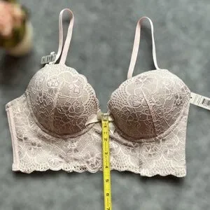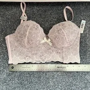 NWT BEAUTIFUL Pink Lace over Gray Longline Bra, 34C