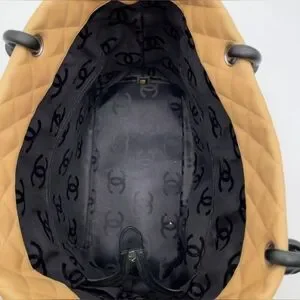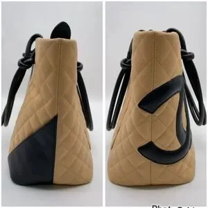 Auth Chanel Cambon Coco Biege/Black Tote Bag