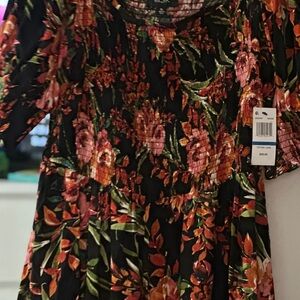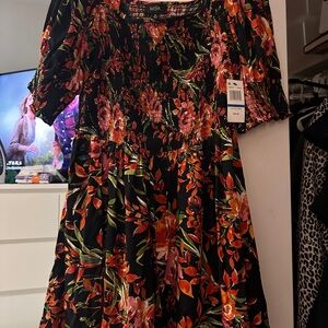 New with tags. Smocked too beautiful puffed shoulders. Perfect for fall with tall boots or wedges! Size XL bought from macys for $59