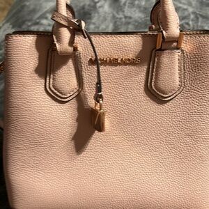 MICHAEL KORS SMALL CROSSBODY PERFECT FOR EVERYDAY USE. MEASUREMENT PLEASE NOTE: 10” W 8” HEIGHT. BEAUTIFUL SOFT PINK TWO CALL OUTS TWO SMALL SCUFFS ON THE CORNER. OVERALL VERY PRETTY BAG EUC