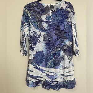 Periwinkle Womens Top Sz Small Blue Multicolored Paisley 3/4 Sleeve Tunic Shirt