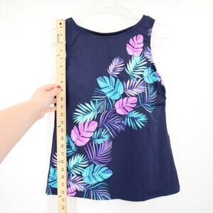 NWOT Lands End Navy Blue Tank Tankini Swim Top Palm Print Purple Size 12