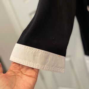 CHICOS Woman’s CALLIE Pullover Sweater is NWT,Black and White Polka Dot. 3/4 Sleeve, Collar / Cuff / Hem are White Cotton Fabric: