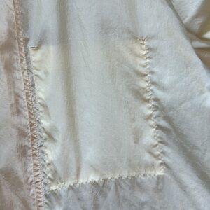 This poncho is NWT. It has two front outside large pockets and 2 smaller inside pockets. This poncho folds into the build in carrying case.