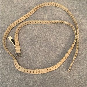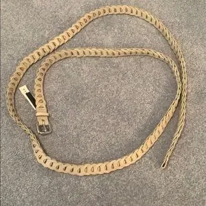 78” long leather belt from Club Monaco. Nice leather smell. Quality belt. Never worn. Size M/L.