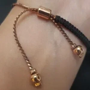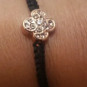 Rose Gold Pave Clover, Used In Good Condition With Minor Wear Scratches/Tarnish, Black Material Rope Bracelet With Adjustable Sizing