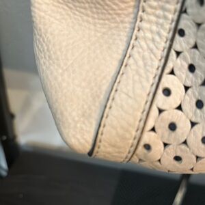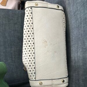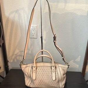 Elegant light beige handbag by kate spade. Stylish design with cut-out pattern, perfect for any occasion.