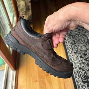 Ralph Lauren Polo Sport Leather Shoe with Velcro Closure; Size 4 1/2 Boys; “Chocolate Myron EZ”, Genuine Leather Upper; Black Rubber Sole; Great Condition; Worn only a few times as a dress shoe