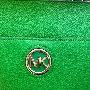 Michael Kors Samira Large Pebbled Leather Tote Bag. Official color is "Palm Green".