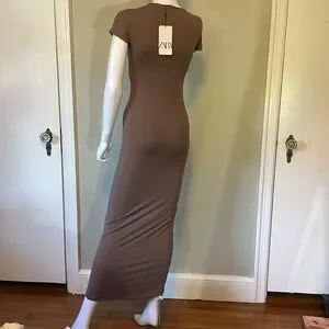 Zara size medium brown clingy form-fitting shortsleeved dress