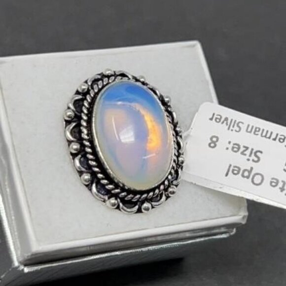 BOGO Stunning White Opal & German Silver Size 8 RING calming & healing powers