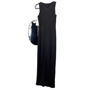 This elegant maxi dress from Lauren Ralph Lauren is perfect for any formal occasion. The dress features a V-neckline, sleeveless design, and a zip closure. The long black dress is lined and has a back slit, adding a touch of glamour to the overall look. The dress is available in size 12 and is suitable for regular size types. It is perfect for weddings, parties, or any cocktail event. The dress is made from high-quality materials and is suitable for all seasons, including winter, summer, fall, and spring. Length is 58"