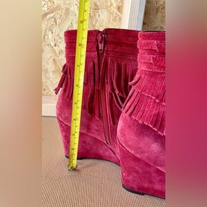 Aerosoles Women's Suede Leather Wedge High Heel Fringe Zip Up Ankle Boots