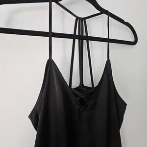 No Boundaries Women Strappy Satin Tank Top Sz L Black Flowy Soft