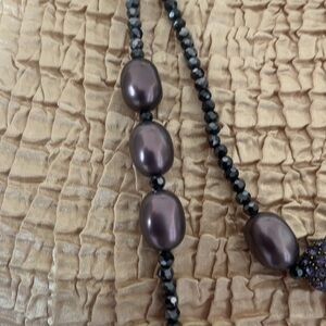 Stand 1: hematite with genuine 1/2” pearl, crystal encrusted bead (periwinkle blue in traditional Heidi gold tone metal).