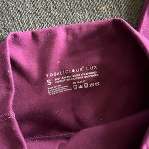Purple leggings from Yogalicious. Lux collection, size small. Good condition with two side pockets. Full length.